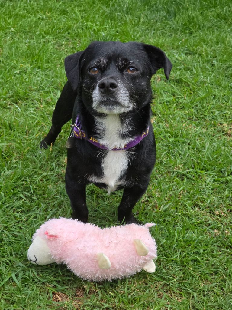 What we know: owner surrendered. He is very sweet. Good play manners with his person, good on leash, however he is not fond of long walks. He is not a hiking dog. He simply prefers to play in the backyard and keeps himself busy with his own toys. He has a very happy-go-lucky personality. Loves toys, will chase whatever toy you throw. He sleeps in bed with his foster mom.