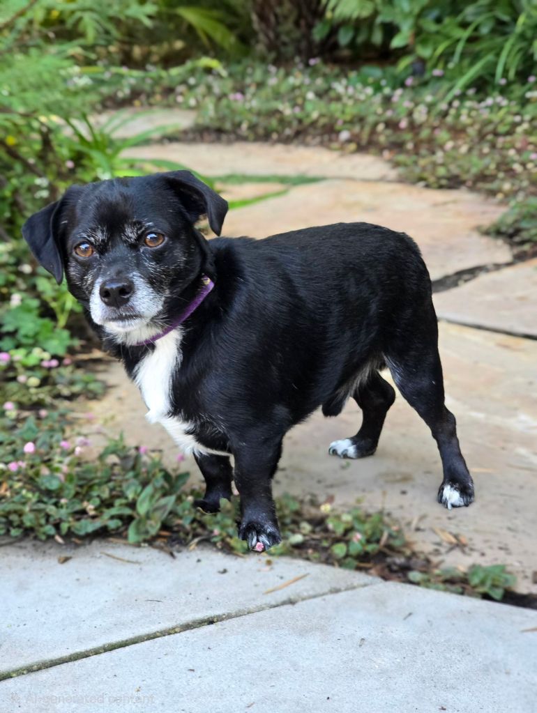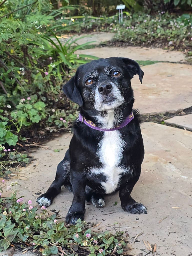 Breed: Mix Breed, he probably has several little breeds in him (Doxie, Chihuahua, Corgi?) He has no tail, short legs, and is low to the ground.